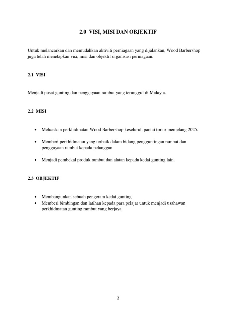 Contoh Visi Dan Misi Perniagaan in English
