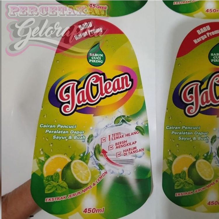 Serta sabun cuci piring dan baju yang masing-masing untuk membersihkan keduanya. Ada 3 lapisan yang terdapat di sticker die cut yaitu lapisan gambar lapisan pelindung dan lapisan belakang. Stiker sablon label nama untuk di kain baju permanent.
